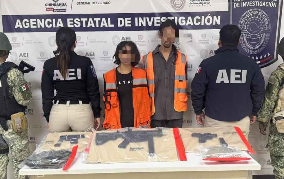 Ciudad Juárez.- Los presuntos mexicles detenidos en supuesta posesión de tres armas de fuego y mariguana fueron descubiertos al conducir un auto similar a uno usado en el homicidio de un …
