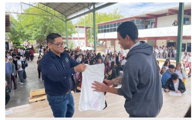 El maestro González encabezó la entrega de los materiales en la plaza civica del plantel, extendiendo su agradecimiento a la dirección de Educación Municipal, mismos que se hicieron cargo de llevar los apoyos hasta dicho plantel.