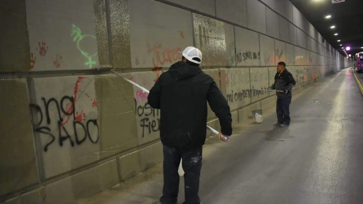 El escuadrón antigraffitti de la Dirección de Limpia, atendió este lunes el Centro Histórico de la Ciudad, con retiro de pintas en los muros del paso a desnivel de la avenida 16 de septiembre, dio a conocer Gibran Solís Kanahan, director de la dependencia.
