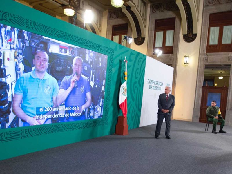 «Nosotros, los cosmonautas de Roscosmos, Oleg Novitski y Pyotr Dubrov felicitamos a todos los habitantes de los Estados Unidos Mexicanos por la fecha significativa para todo el pueblo mexicano, el 100 aniversario de la Independencia de México.